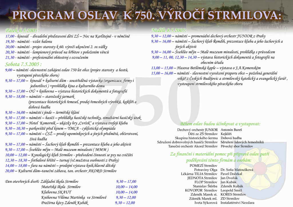 Program oslav k 750. výročí první zmínky o Strmilovu
