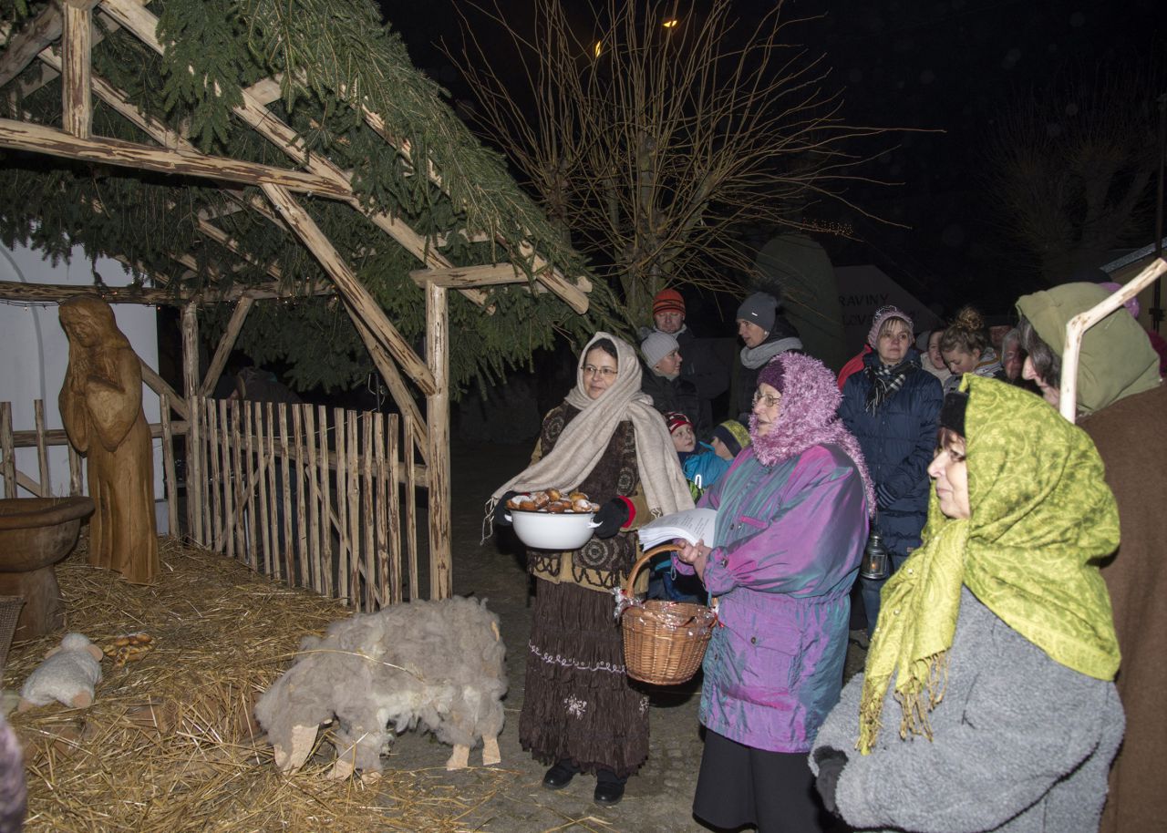 Předávání betlémského světla, zpívání koled, průvod koledníků k jesličkám na náměstí (foto V. Semotán)