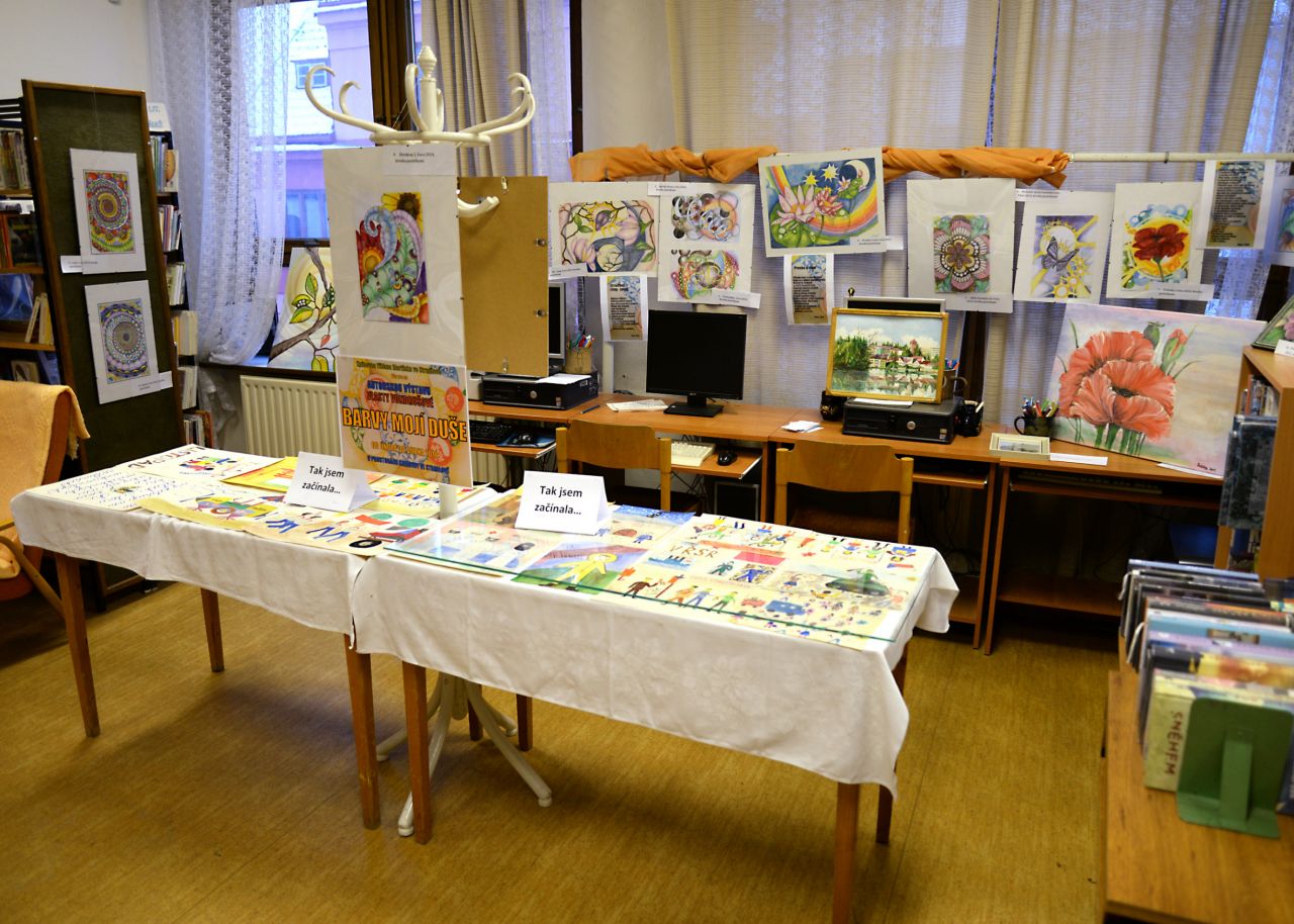 Od února jsou k vidění v místní knihovně barevné obrazy knihovnice.