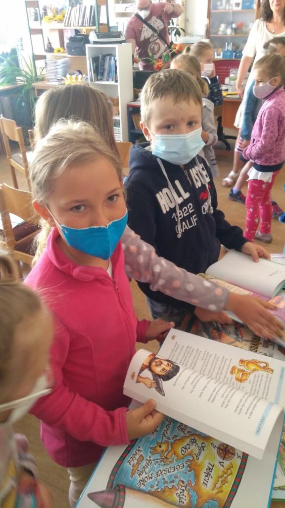 Letošní a minulý rok způsobil, že děti z druhé ani z první třídy zatím nenašly cestu do knihovny. V červnu jsme jim knihovnu aspoň trochu chtěli přiblížit. Přišly si pro pamětní listy pro začínající čtenáře a dostaly jako dárek od knihovny krásné knížky.